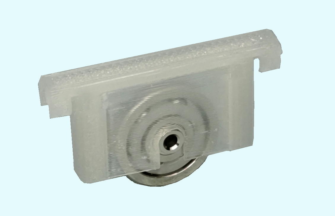 袴に差し込むだけで、取付部のツメが袴の内側に食い込み、しっかりと固定されます。アルミ40H袴の深い方(22o)に戸車、浅い方(16o)にガラスをセットして使用します。 |