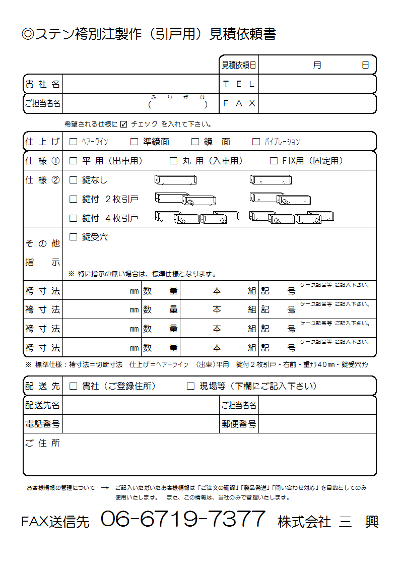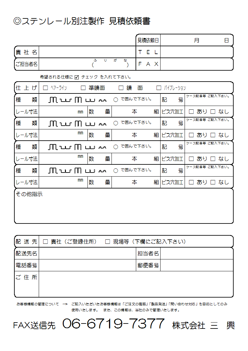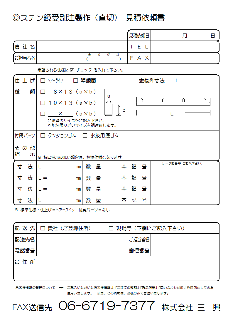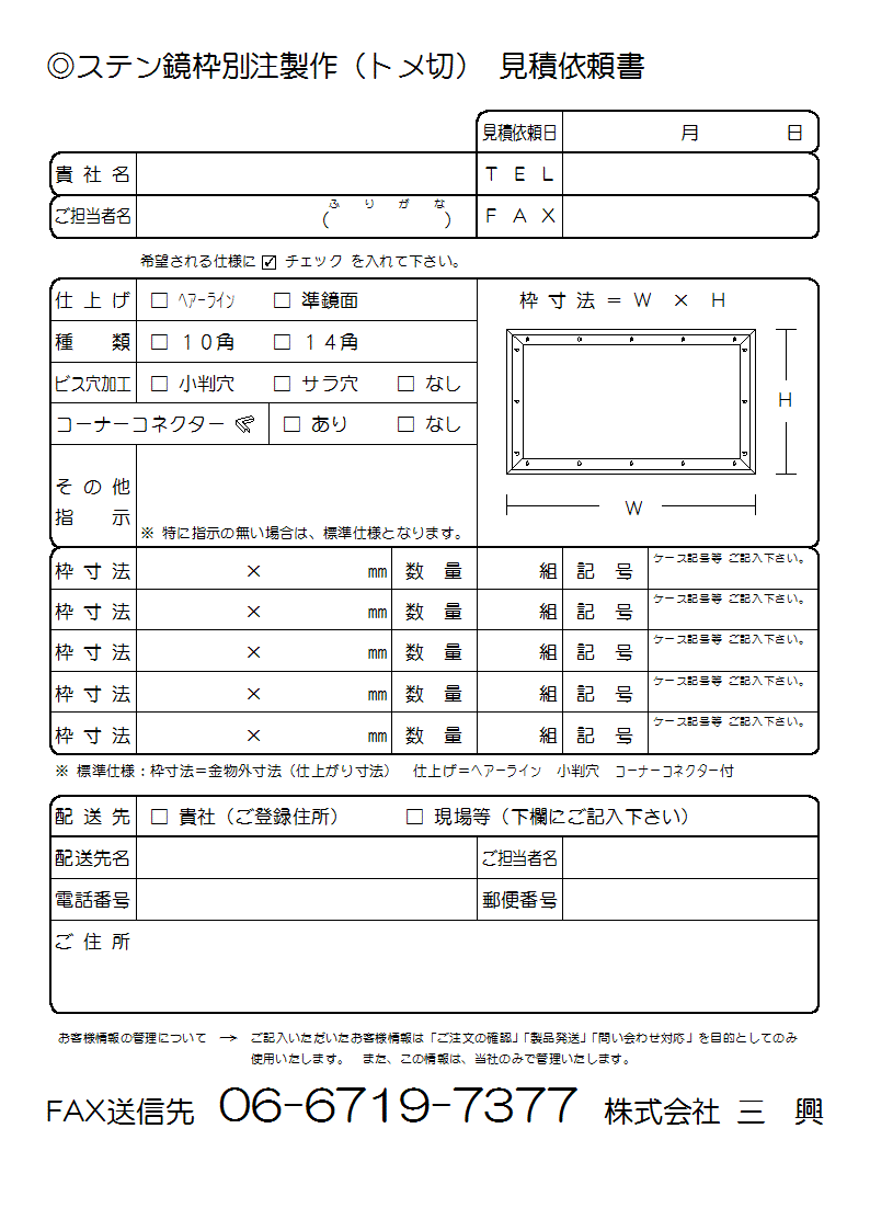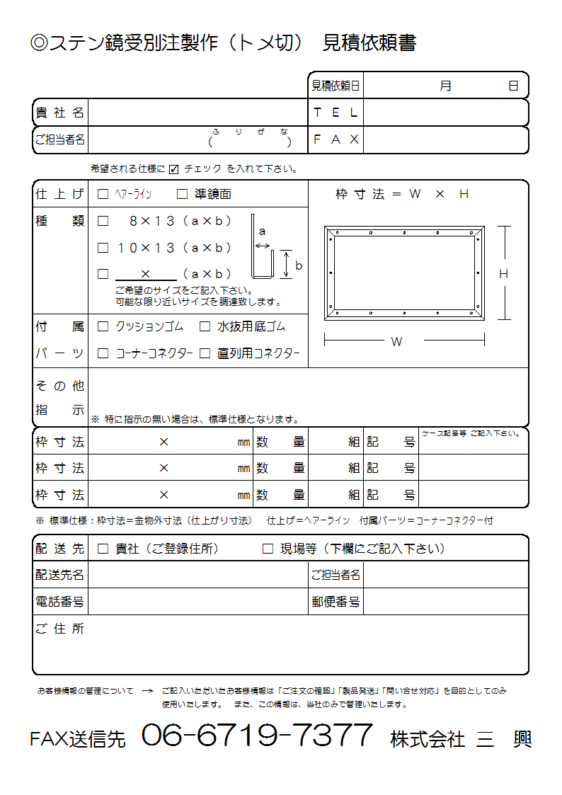 6.ステン鏡枠(トメ切)別注製作のお見積